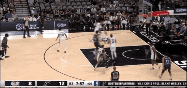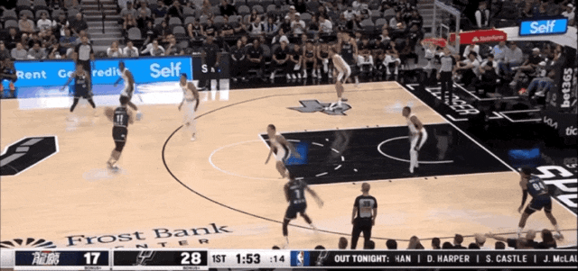 半場比賽結(jié)束時,馬刺74-45領先29分